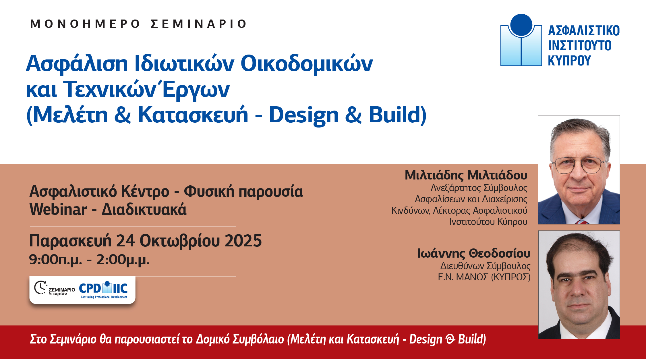 ΜΟΝΟΗΜΕΡΟ ΣΕΜΙΝΑΡΙΟ – ΑΣΦΑΛΙΣΗ ΙΔΙΩΤΙΚΩΝ ΟΙΚΟΔΟΜΙΚΩΝ ΚΑΙ ΤΕΧΝΙΚΩΝ ΕΡΓΩΝ (ΜΕΛΕΤΗ & ΚΑΤΑΣΚΕΥΗ – DESIGN & BUILD)