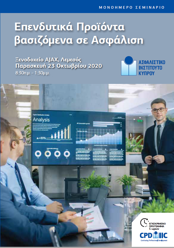 ΜΟΝΟΗΜΕΡΟ ΣΕΜΙΝΑΡΙΟ – ΕΠΕΝΔΥΤΙΚΑ ΠΡΟΙΟΝΤΑ ΒΑΣΙΖΟΜΕΝΑ ΣΕ ΑΣΦΑΛΙΣΗ (ΛΕΜΕΣΟΣ) Posted at h in News by iicUser18 Ξενοδοχείο AJAX, Λεμεσός Παρασκευή 23 Οκτωβρίου 2020 8:30π.μ. – 1:30μ.μ. Διαβάστε Περισσότερα Share Print page