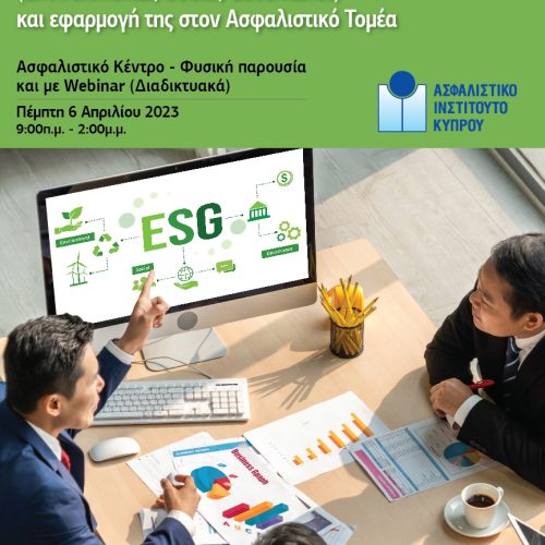 ΜΟΝΟΗΜΕΡΟ ΣΕΜΙΝΑΡΙΟ – ΠΕΡΙΒΑΛΛΟΝΤΙΚΗ, ΚΟΙΝΩΝΙΚΗ ΚΑΙ ΕΤΑΙΡΙΚΗ ΔΙΑΚΥΒΕΡΝΗΣΗ (ENVIRONMENTAL, SOCIAL, GOVERNANCE) ΚΑΙ ΕΦΑΡΜΟΓΗ ΤΗΣ ΣΤΟΝ ΑΣΦΑΛΙΣΤΙΚΟ ΤΟΜΕΑ News