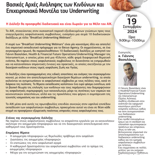 1η ΔΙΑΔΙΚΤΥΑΚΗ ΔΙΑΛΕΞΗ: ΒΑΣΙΚΕΣ ΑΡΧΕΣ ΑΝΑΛΗΨΗΣ ΤΩΝ ΚΙΝΔΥΝΩΝ ΚΑΙ ΕΠΙΧΕΙΡΗΣΙΑΚΑ ΜΟΝΤΕΛΑ ΤΟΥ UNDERWRITING News