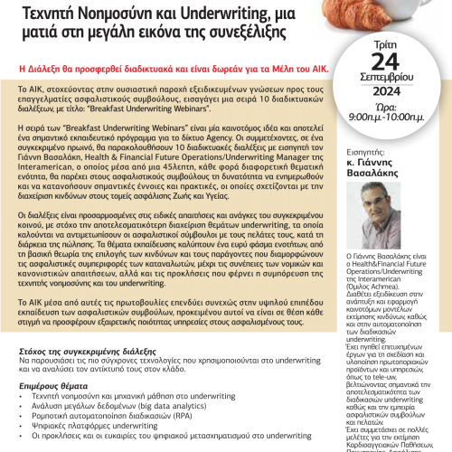 2η ΔΙΑΔΙΚΤΥΑΚΗ ΔΙΑΛΕΞΗ: ΤΕΧΝΗΤΗ ΝΟΗΜΟΣΥΝΗ ΚΑΙ UNDERWRITING, ΜΙΑ ΜΑΤΙΑ ΣΤΗ ΜΕΓΑΛΗ ΕΙΚΟΝΑ ΤΗΣ ΣΥΝΕΞΕΛΙΞΗΣ News