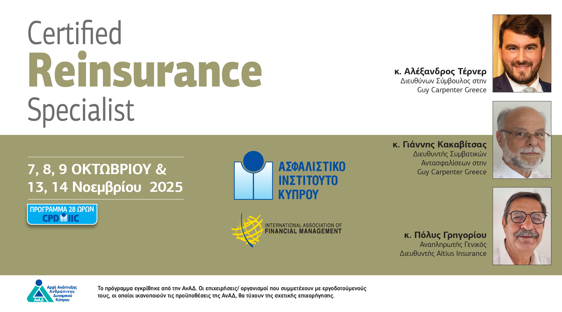 Certified Reinsurance Specialist Posted at h in News by iicUser18 7,8,9 Οκτωβρίου 13, 14 Νοεμβρίου 2025 Διαβάστε Περισσότερα Share Print page