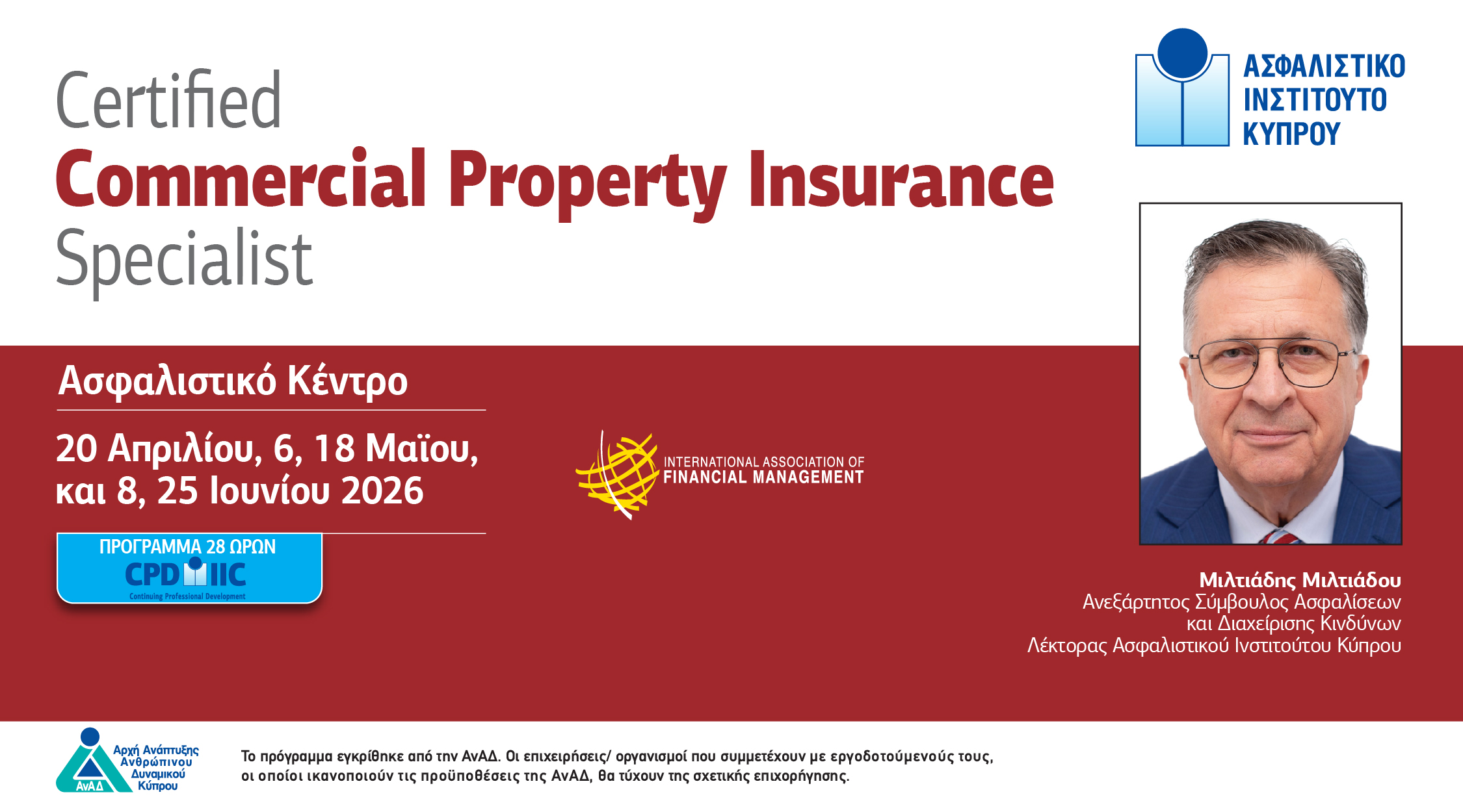 CERTIFIED COMMERCIAL PROPERTY INSURANCE SPECIALIST Posted at h in News by iicUser18 20 Απριλίου – 6, 18 Μαϊου – 8, 25 Ιουνίου Διαβάστε Περισσότερα Share Print page